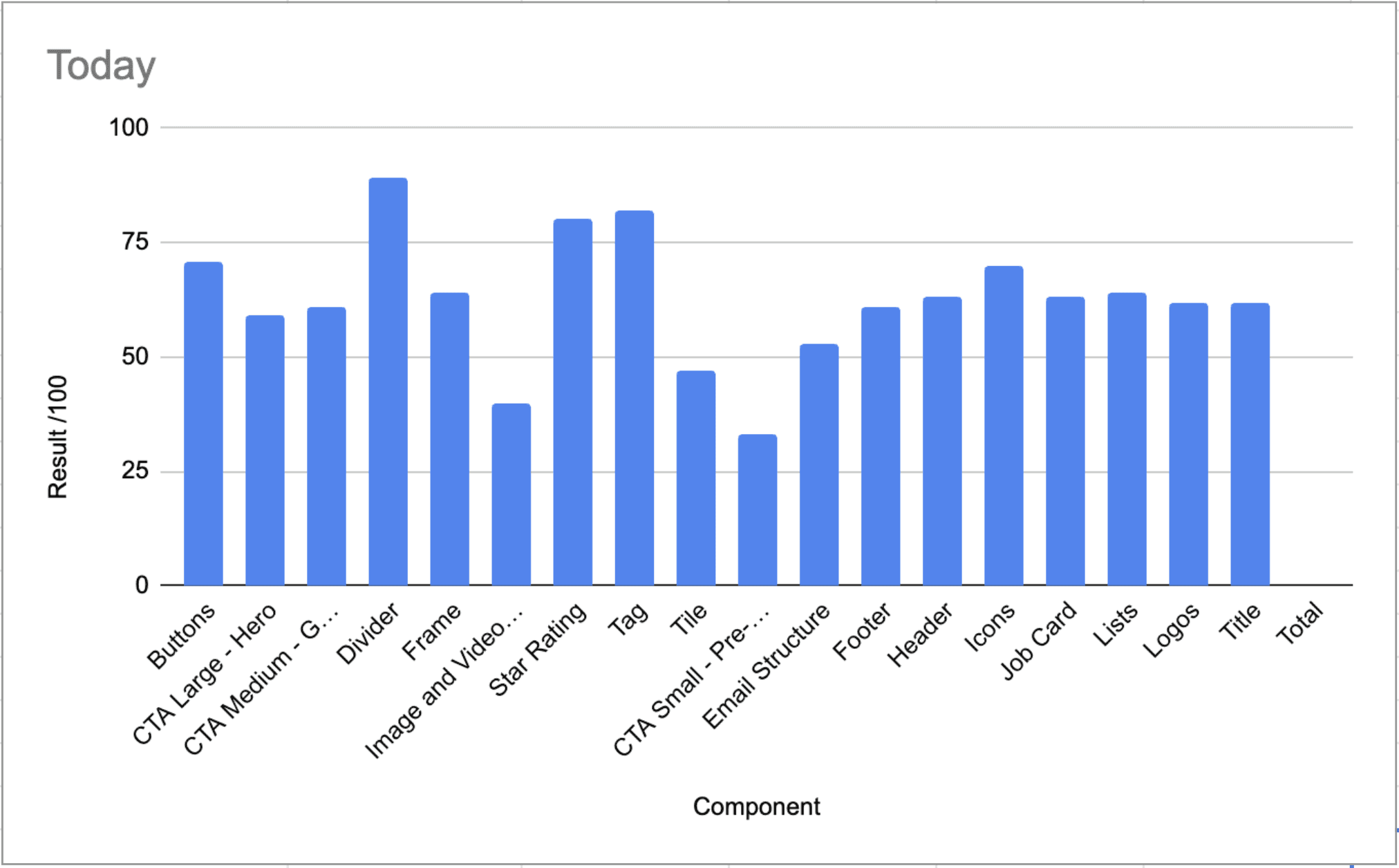 We discovered that the quality of the email components was "Unacceptable," with an average score of 60/100. This clearly indicated not just room for improvement, but an urgent need for enhancement.