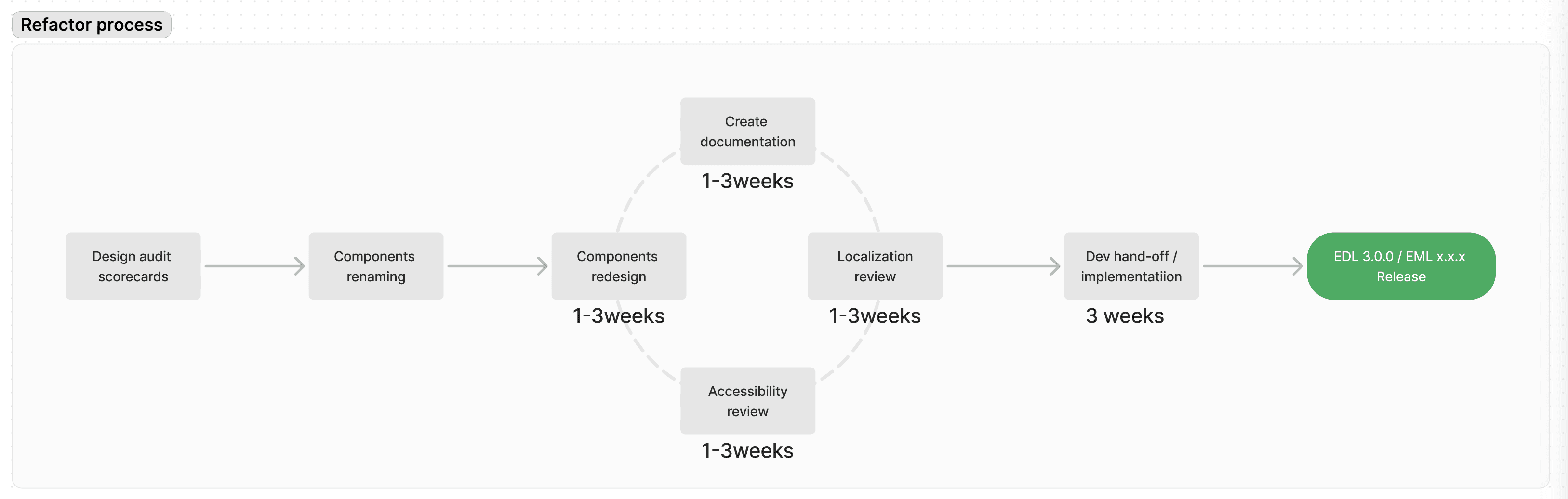 To ensure a consistent outcome, I established a comprehensive process for the team of designers to follow. This process encompassed all the steps required for the refactoring of each component. By adhering to this process, we ensured that the components were consistent, updated, accessible, universal, and scalable.