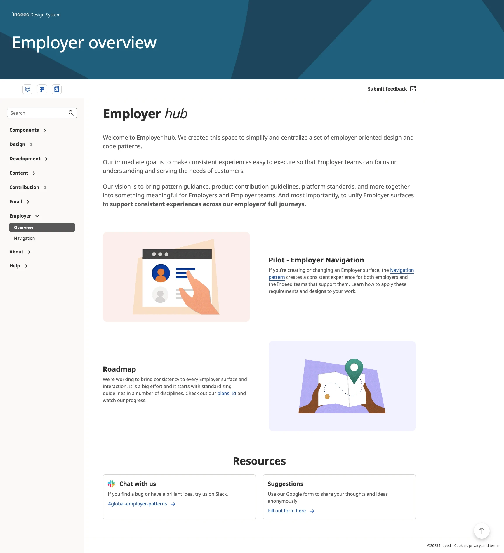 Product teams at Indeed were unintentionally creating inconsistent user experiences despite following design system guidelines. An Employer Patterns & Standards team audit revealed gaps in product-specific design guidelines, which were scattered across multiple platforms, such as Google Docs, presentations, wikis, and Slack threads. This fragmentation led to inefficiencies and confusion.