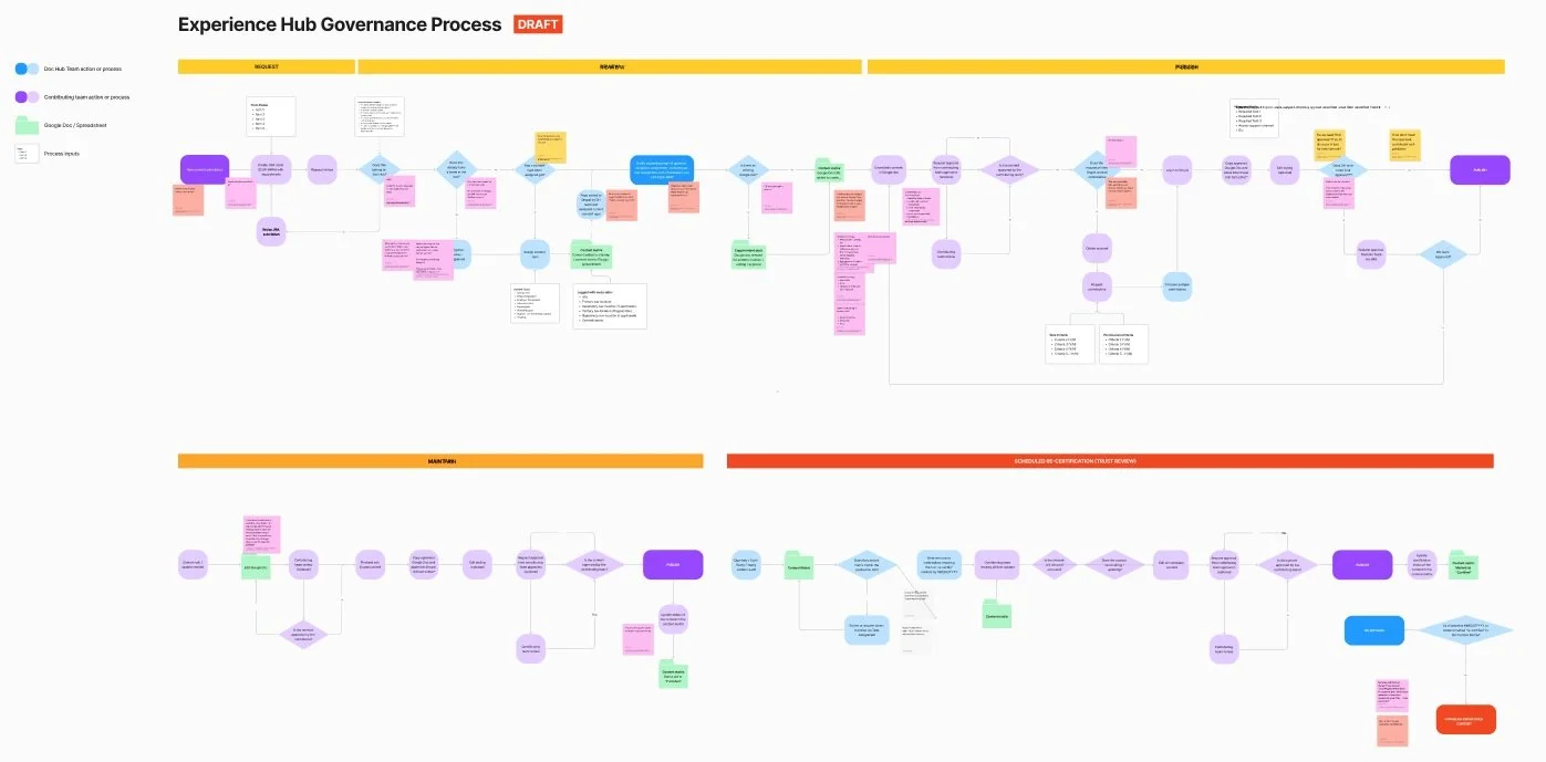 Result: Established a clear content contribution and publishing model, defined governance roles and permissions, and created a robust support process for issue reporting and content maintenance. These changes facilitated smoother and more consistent content contributions from various teams.